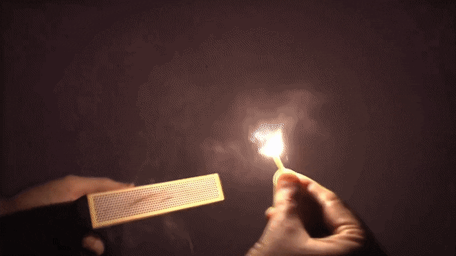As the match burns, smoke begins to rise.
