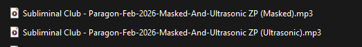 It’s just a naming issue. The masked and ultrasonic files are fine. I forgot that qOS appends “Masked and Ultrasonic” automatically and I only have to enter “Paragon.” Since I put the title in the system with the “Masked and Ultrasonic,” it double added it to everything.