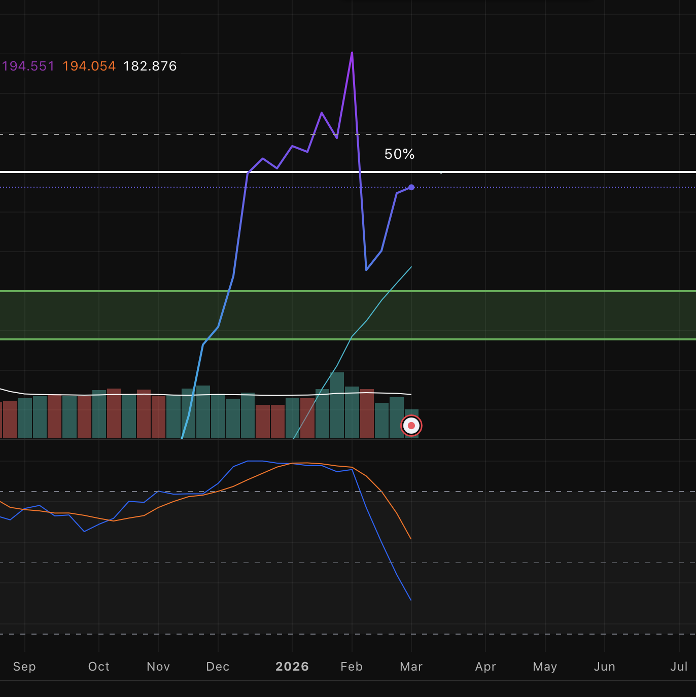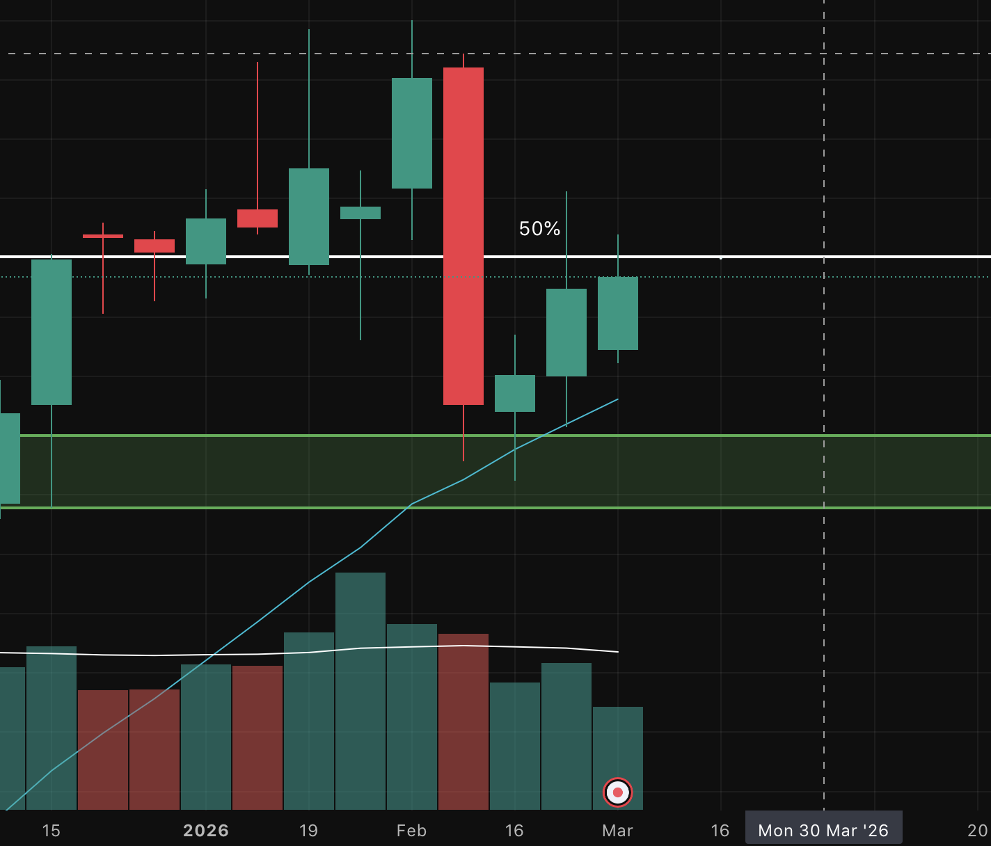 @GoldenTiger Not sure if this is useful. The way i was taught was if you get a big candle like this, then enter only if it can successfully close above the 50% mark, the probability is higher for a reversal back up. If it can’t then it’s just gonna do another leg lower more than likely. The volume on the weekly is just still sitting below the average volume line too.