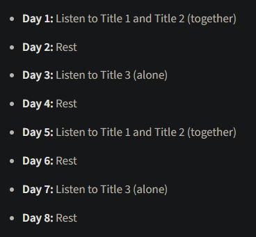 I’m even alternating the listening time, going up to 7 minute for one listen day and then back to 1 or 3 for the other. It seems I don’t really have issues with recon with this new tech. I even had good results when I did my last washout.