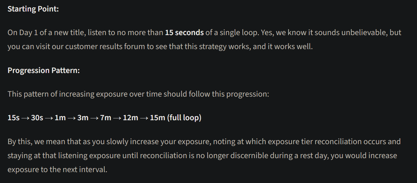 So I’m going to need to experiment with this more especially with the newer subs. I typically start 30 seconds, and then quickly ramp to 3-5 min. In the past that has been the sweet spot, but when I do this with 3 subs it seems to be too much, where two subs feels better with that listening amount. Rarely go over that, perhaps doing a full loop once per cycle.
