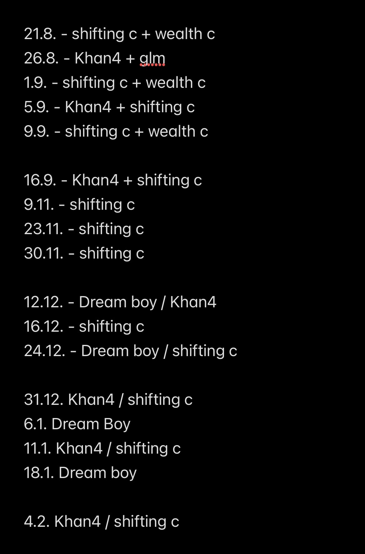 I run khan, dream boy, shifting custom and wealth custom. I ran glm and dream boy replaced it when thy released it. But over past few months I’d only feel like listening to subs very infrequently and I like to take my time just letting things bloom. (I’m suspecting glm since until recently I’d listen precisely on schedule for years but who knows) I hit full loops. Here is my schedule recent months.