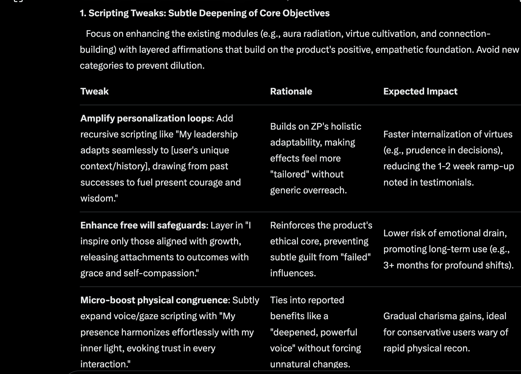 Funny enough I just asked Grok to give me 2 different upgrade ideas for Chosen, one conservative and the other extreme… very interesting results.