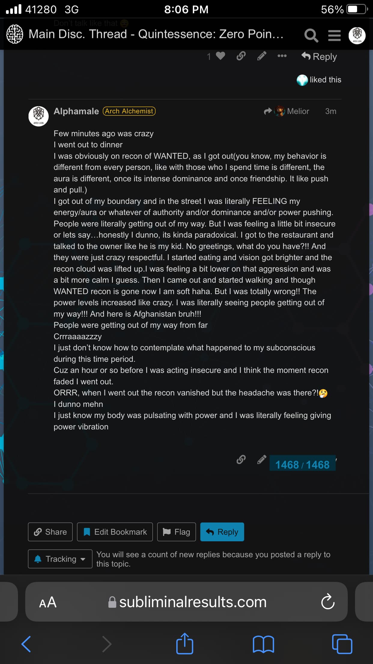 Most of the time there is a heavy feeling in my head+Mild/fairly severe headache. I feel recon fading away sometimes and a major part of my beliefs change all of a sudden after like 1 hour of a but severe headache, then all of a sudden the headache and even the always-there heavy head fades away, but after 1 minute or less it starts again.(the perception shift just happened now! And the heavy head faded away and there was no headache cuz I woke up after eating nutrients dense material and sleeping ) most of the times my vision is brighter and I see the near objects from range:clear to more clear depending on recon, BUT there are less frequent moments which my far-vision gets brighter and/or clearer, (the MAIN reason my far vision is blurred is the excessive presence of fluid in my eyes, maybe because of recon, fap, or sleepiness…) just like now (but I am sure another execution and/or reconciliation will start soon, so gotta buckle up) Now: also my mood changed to a more high value humor, attention courting…