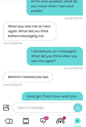 This girl is asking me how I felt when I saw her profile. As if I had sex with her before and we were reconnecting it’s eerie.