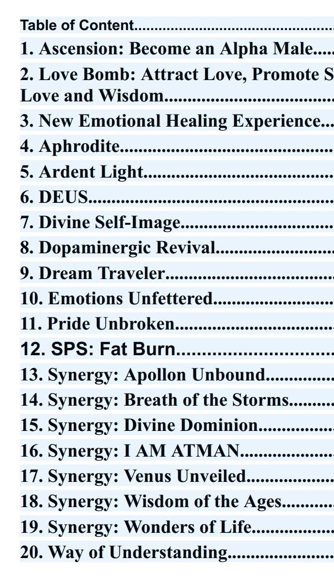 • DEUS: Push the processing power and efficiency of the entire subliminal to its absolute limit through optimized brainwave and hormonal states.