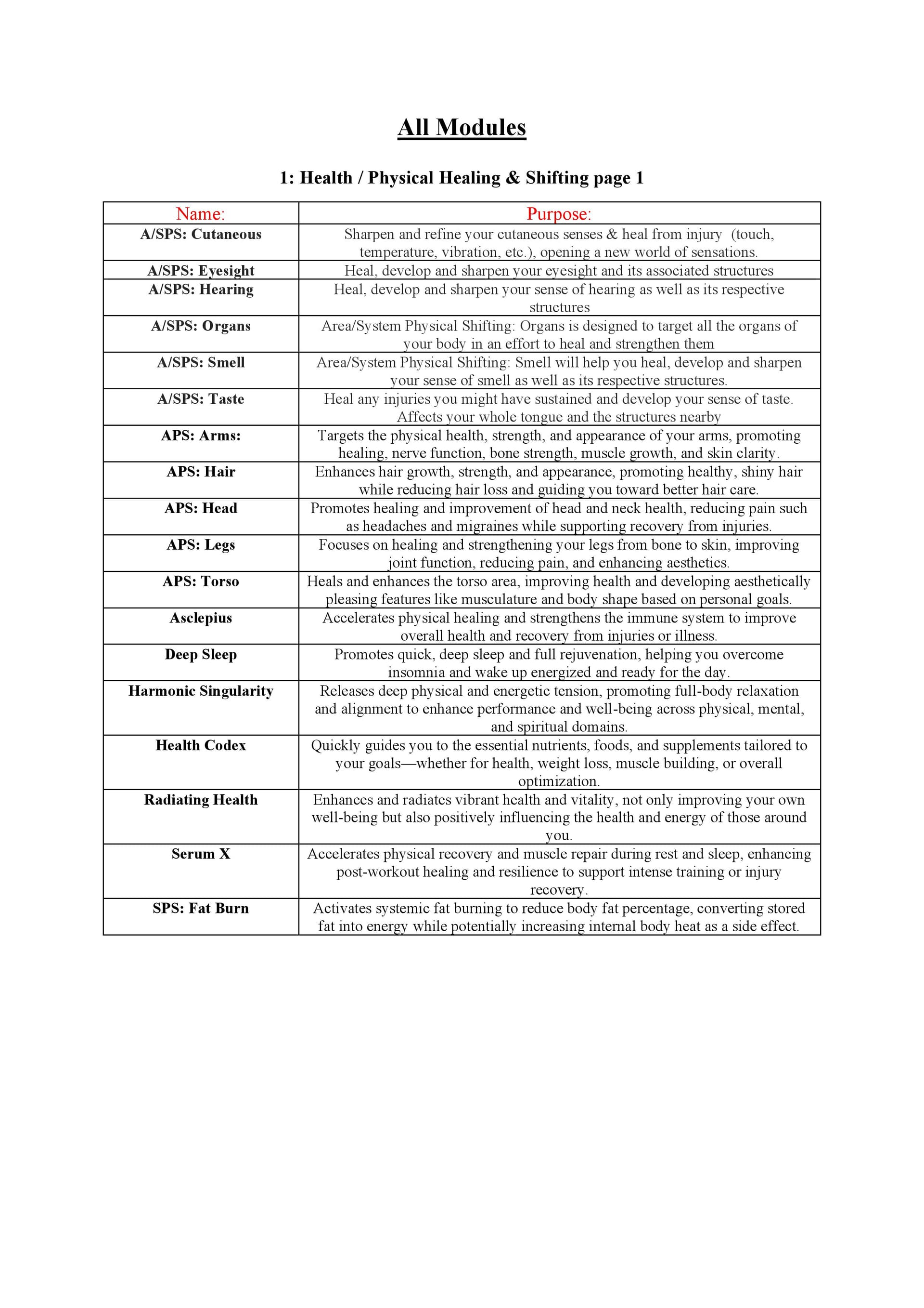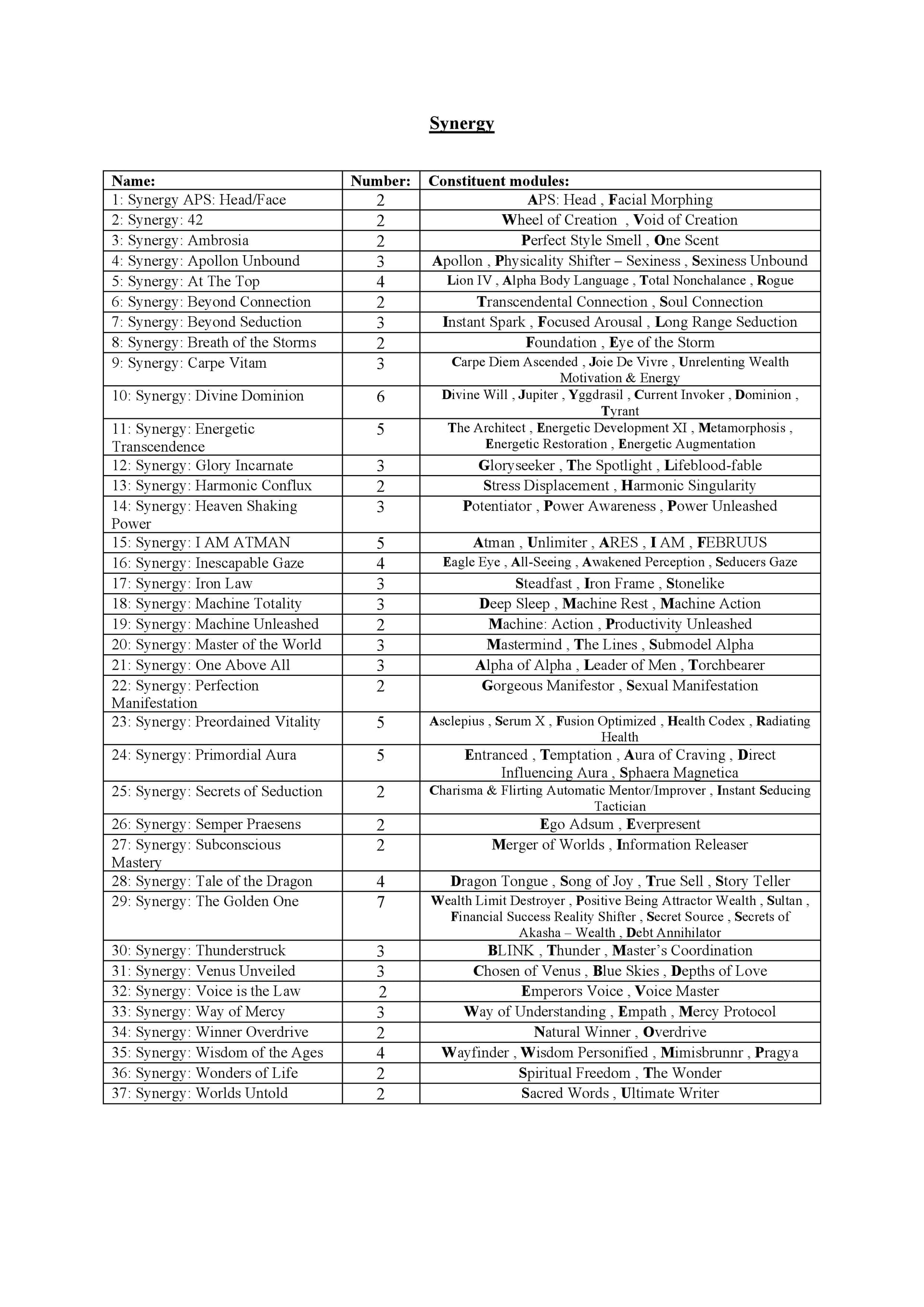 - All 37 Synergy Modules