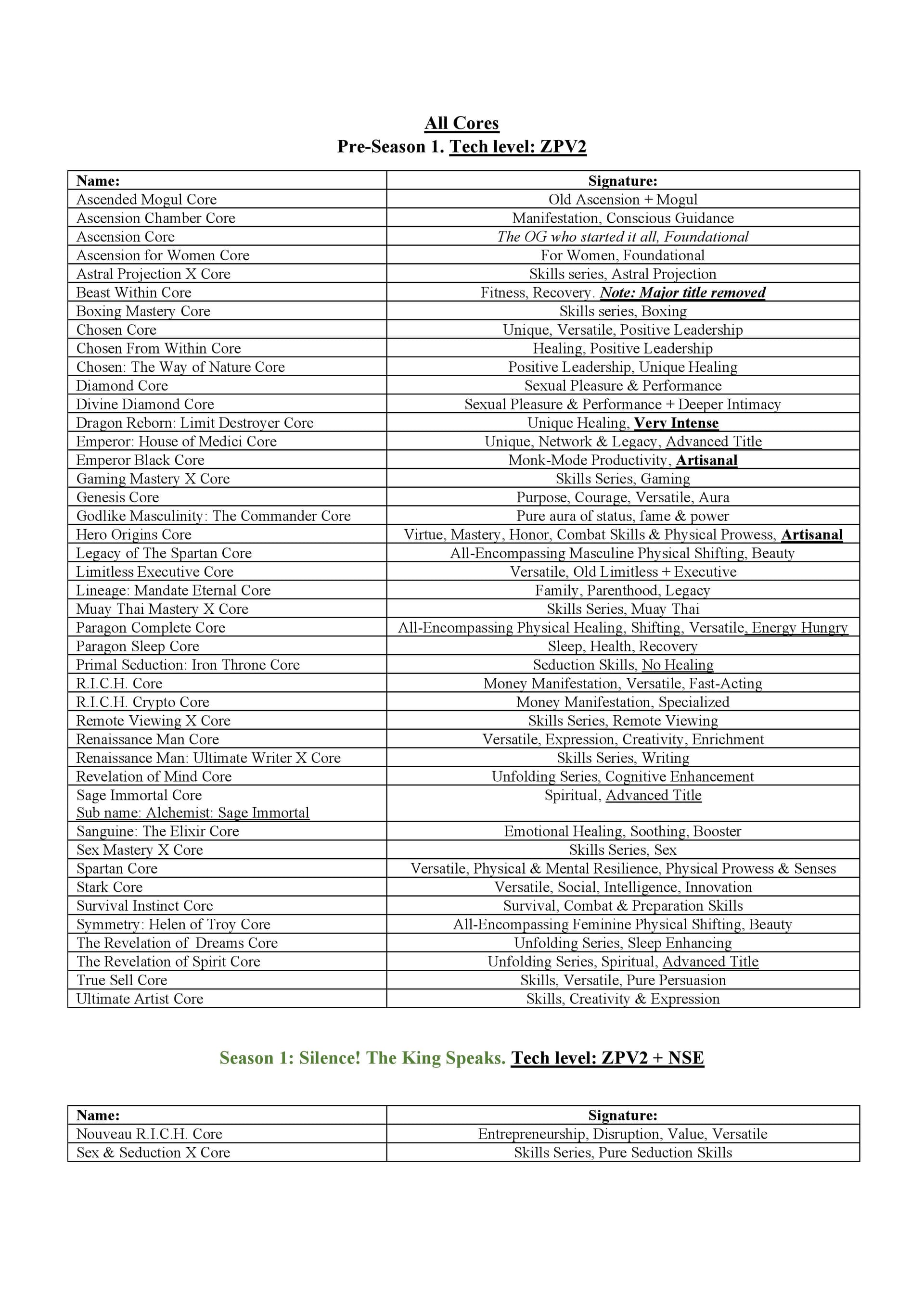 - All 84 Subliminal Cores