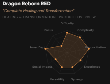 Dragon Reborn RED takes a more confrontational approach to healing. Its method is to actively break down, purge, and purify limiting subconscious structures. The stages are designed to burn through negative beliefs, emotions, and energies directly — ST1 (Dragon Fire) is explicitly a purification and cleansing stage, and ST2 (Dragon Blood) continues with deep, comprehensive healing on all levels. RED also includes extensive rebellion scripting that pushes you to fight against everything that isn’t the true “you.” Through its NSE scripting, RED manifests life situations designed to help you “dissolve, heal, transform and transcend” the structures holding you back — and those situations can be intense, because you’re being pushed to confront your shadow head-on.